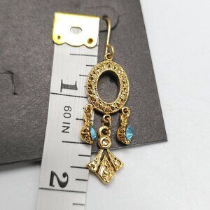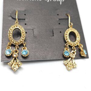 Gold-Tone Oval Dangle Earrings With Blue Rhinestones By Darlene Group