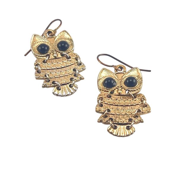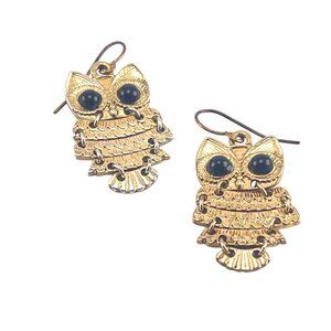 Gold-Tone Owl Dangle Earrings With Black Accents For Women