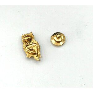 Gold-Tone Owl Lapel Pin With Green Gemstone Accent & Crystal Eyes