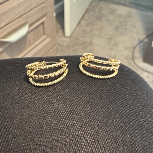 Add a touch of elegance to your look with these stunning gold-tone hoop earrings. Perfect for any occasion.