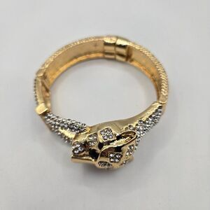 Gold-Tone Rhinestone Panther Jaguar Head Hinge Bracelet Magnetic Closure