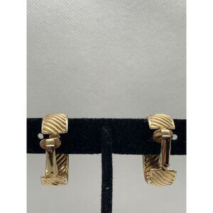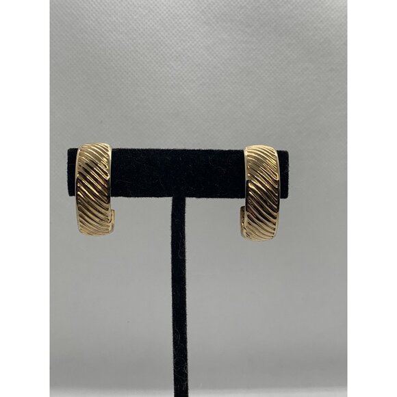 Elegant gold-tone clip-on earrings designed with a ribbed texture. Ideal for adding sophistication to your accessory collection.