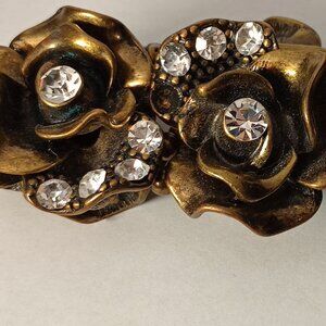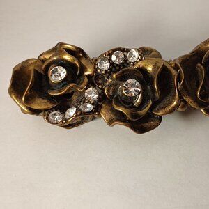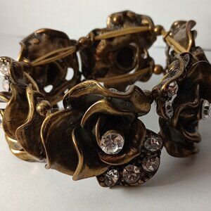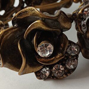 Gold-Tone Rose Shaped Bracelet with Rhinestones