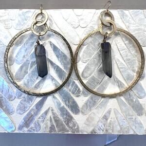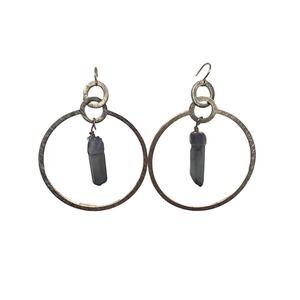 Accesorize any look with these gold-tone statement earrings that feature a gray quartz stone in the center for good energy.