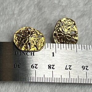 These exquisite gold-tone sand dollar earrings capture the essence of a sunlit beach, adding a touch of coastal elegance to any outfit. Their intricate design resembles the delicate patterns found on real sand dollars, making them a perfect accessory for sea lovers and beachcombers alike.