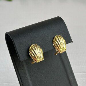 These pierced-ear earrings feature a gold-tone shell design. For versatile styling, wear them with or without the mother-of-pearl rings.