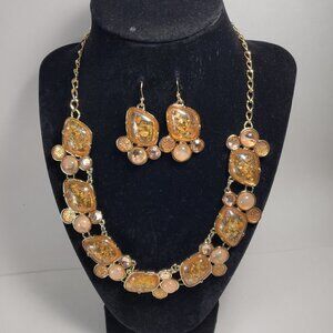 Gold-Tone Statement Necklace & Stone Drop Earrings Set – Elegant Women’s Jewelry