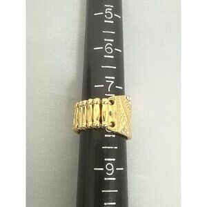Gold-Tone Statement Ring With Rhinestones & Textured Detail