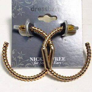 Gold-Tone Twisted Open Hoop Earrings – Statement Jewelry for Sensitive Ears
