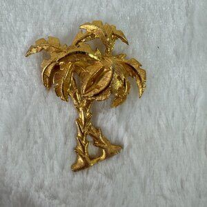 Gold-Tone Vintage Palm Tree Brooch Pin Tropical Jewelry Retro Beach Statement