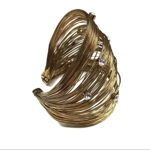 Gold Tone Wire Cuff Bracelet with Rhinestones