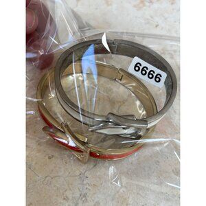 Gold-Tone orange & White Enamel Buckle Bangle Bracelets Set Of 2