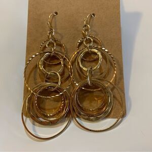 Gold Tone Drop Dangle Layered Circles Pierced Earrings 3”