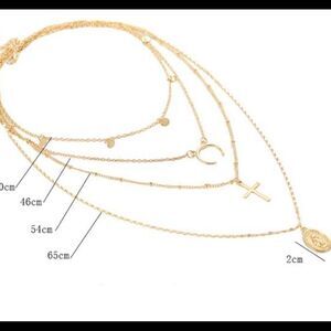 Gold Tone Multilayer Cross Circle Moon Necklace