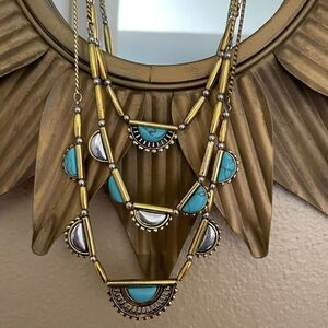 Gold Tone Turquoise Three Tiered Necklace