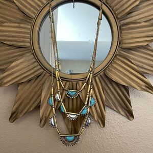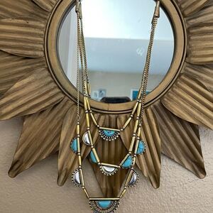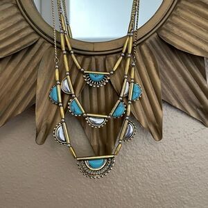 Gold Tone Turquoise Three Tiered Necklace
