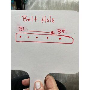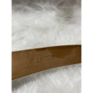 Some minor discoloration and wear near the buckle and adjustment holes. Total length = 38 inches, width = 1 inch.