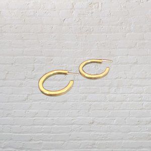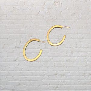 Gold-toned hoop earrings will always present you as both elegant and classy! These post earrings (made for pierced ears) are small, flat, and narrow, adding a touch of sophistication to any outfit. Whether you're dressing up for a special occasion or dressing down for a casual day out, these earrings are the perfect accessory. With their versatile design, they effortlessly elevate any look. Don't miss out on these timeless earrings that add a touch of glamour to your style.