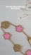 Gold-Toned Stainless Steel Pink & Stones Flower Motif Bracelet