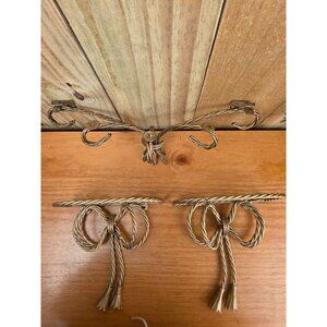 This charming set of wall hooks and shelves, crafted from twisted metal in a gold finish, exudes timeless elegance. The intricate bow designs and sturdy craftsmanship make it a versatile piece for showcasing items or adding a decorative touch to any space.