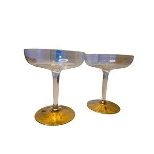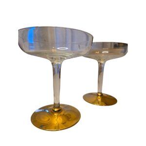 Gold-Trimmed Clear Glass Coupe Cocktail Glasses Set Of 2