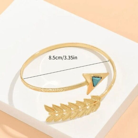 Chic Gold Turquoise Arrow Leaf Adjustable Arm Cuff