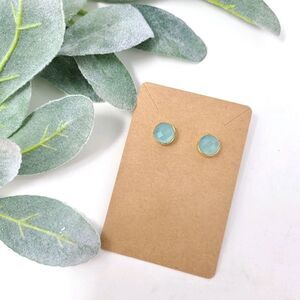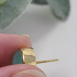 Sterling silver vermeil covered stud earrings with faceted sea green | aqua colored stones. They are marked 925 on the post of the earring as well as the earring backs. They are just under 1/2" wide and weigh 4.96 grams. Thank you so much for looking! I am always open to reasonable offers. Have a fantastic day!