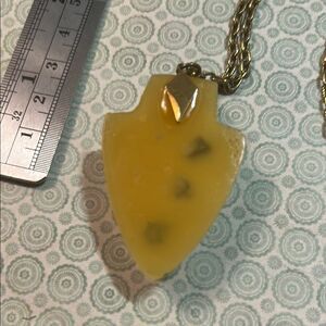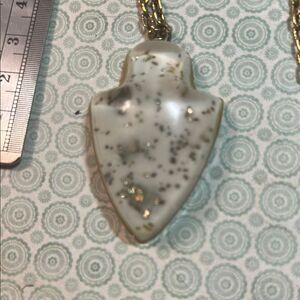 Elegant gold chain necklace featuring a cream pendant with unique speckled design. Perfect for adding a touch of sophistication to any outfit. approximately 12”.