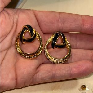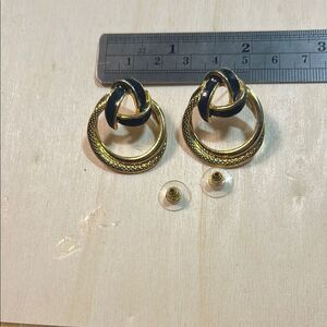 Elegant gold and blue knot earrings perfect for any occasion. Add a touch of sophistication to your outfit with these stylish accessories. 435