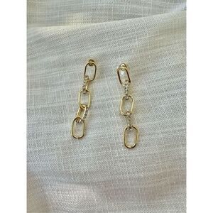 Gold and Rhinestone chain link earrings Fashion jewelry 2 1/3 inches long Light weight Dainty Minimalistic style