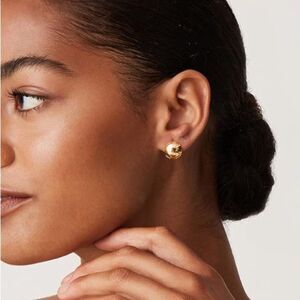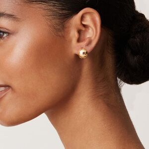 These 14K yellow gold plated ball huggies with sterling silver posts are the perfect combination of retro and modern.