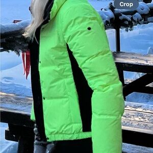 Vibrant lime ski jacket by Goldbergh. Features a sleek design. Perfect for winter sports. Goldbergh Shorty Ladies Woven Ski Jacket - size 4 - in great condition! I love this jacket and always get so many compliments when skiing with it, and my friends can always spot me on the mountain!