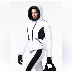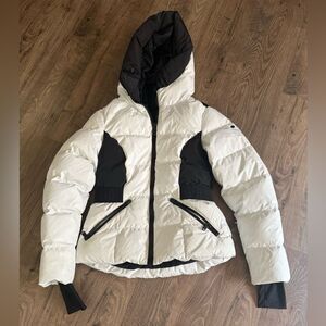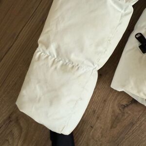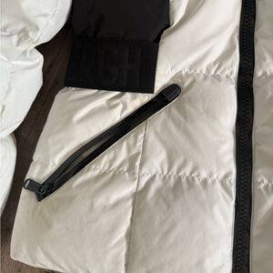 Worn once. Slightly dirty as shown. It’s just dirt and will come out with dry cleaning. Writing on label to prevent returns