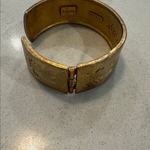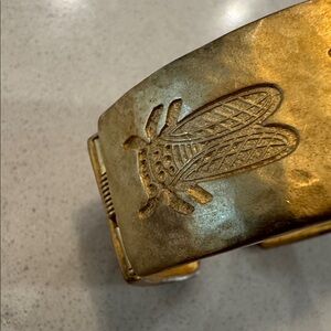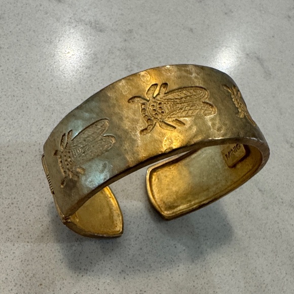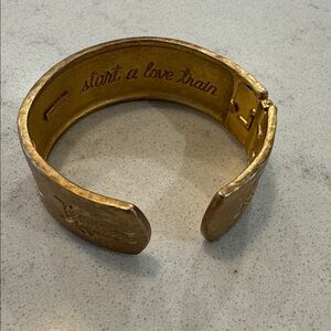 Goldbug Jewelry love Train cuff. Brushed gold with hinge for easy put on/take off