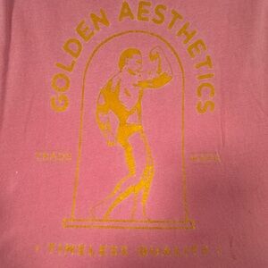 Stylish pink tank top with Golden Aesthetics logo. Perfect for casual wear.