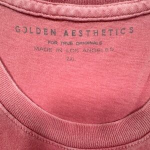 Stylish pink tank top with Golden Aesthetics logo. Perfect for casual wear.