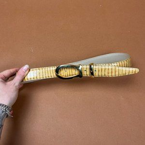 Tan authentic leather retro gold buckle waist belt. In very nice preloved condition.