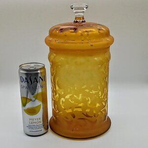 Golden Amber Frosted Etched Glass Tall Covered Canister