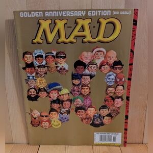 Celebrate with the Golden Anniversary Edition of MAD Magazine. Features iconic caricatures on the cover.