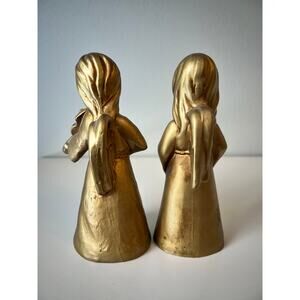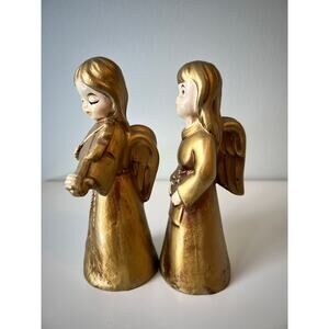 Golden Ardco Angels Figures 1950s or 1960s Choir or Musician Set Made in Japan Vintage Gold Angel Musician Violinist and Caroler - set of 2 Angels.The figurines are made of ceramic or a similar material, and are hand-painted with a gold finish.