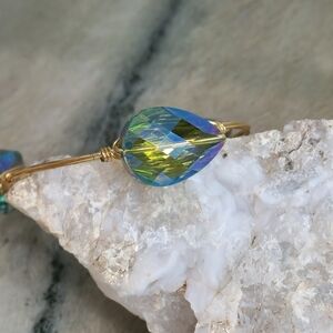 Handmade bracelet, Wire-wrapped jewelry, Crystal bracelet, Gemstone bangle, Unique artisan jewelry, Bohemian crystal accessory, Natural stone bracelet, Elegant gem bangle, Artistic wire jewelry, Healing crystal bracelet, Trendy gemstone accessory, Boutique jewelry, Custom crystal bangle, Luxury handcrafted accessory, Gift-worthy gemstone bracelet.