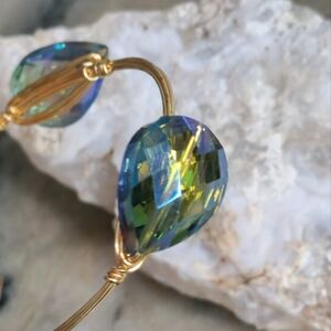 Golden Aurora Wire-Wrapped Bangle with Iridescent Faceted Crystals