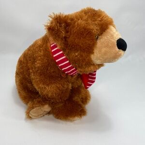 Golden Bear Co. Soft & Cuddly Sitting Bear 15" Large Red Stripped Scarf