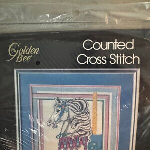 Golden Bee Carousel Horse Counted Cross Stitch 60277 Sealed New Old Stock Vtg