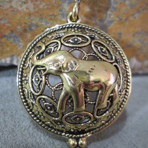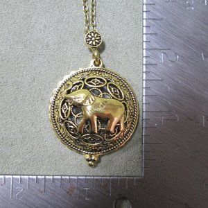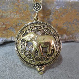 Golden Brass ELEPHANT Loupe Necklace 5X Magnifying Lens