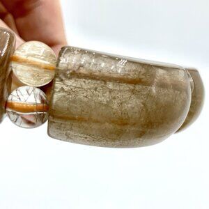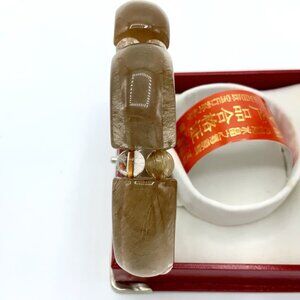 Golden Brown Rutilated Quartz Crystal Stretch Bracelet Gemstone Beads w/ Box