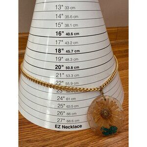 Golden Chain Necklace With Resin Daisy Pendant & Blue/Green Accents