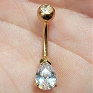 Golden Classic Teardrop Sparkle Gem Belly Button Ring