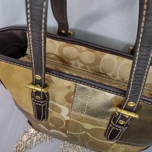 Gorgeous gold Coach patchwork handbag. Pre loved but great condition. Zippered closure. Limited edition. Rare vintage coach.
