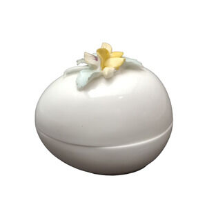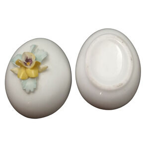 This is a floral bone china egg trinket box by Golden Crown E & R made in England.